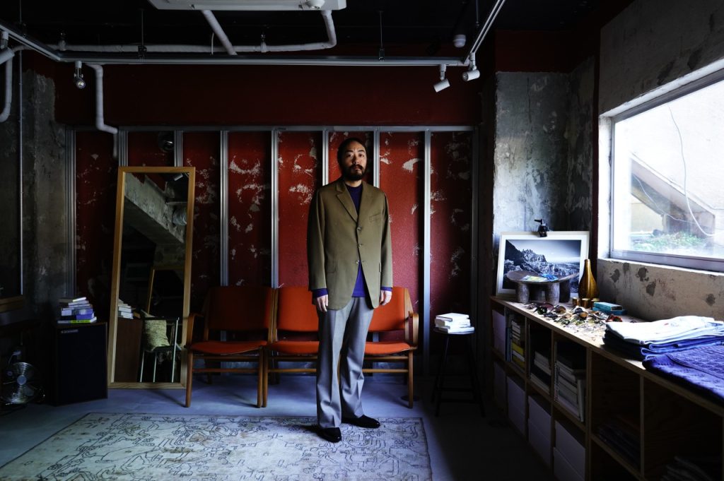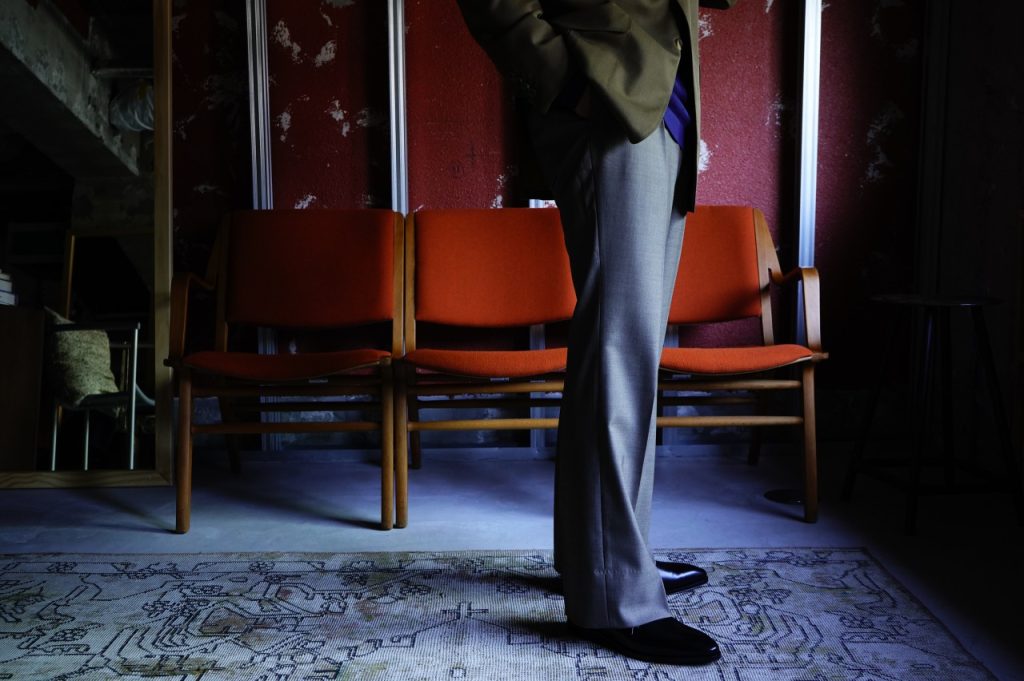 他人から譲り受けそのままのレングスで履いている、暫く時代から取り残されたノープリーツのスリムテーパードのパンツと合わせても、今の気分になんとなくマッチする。