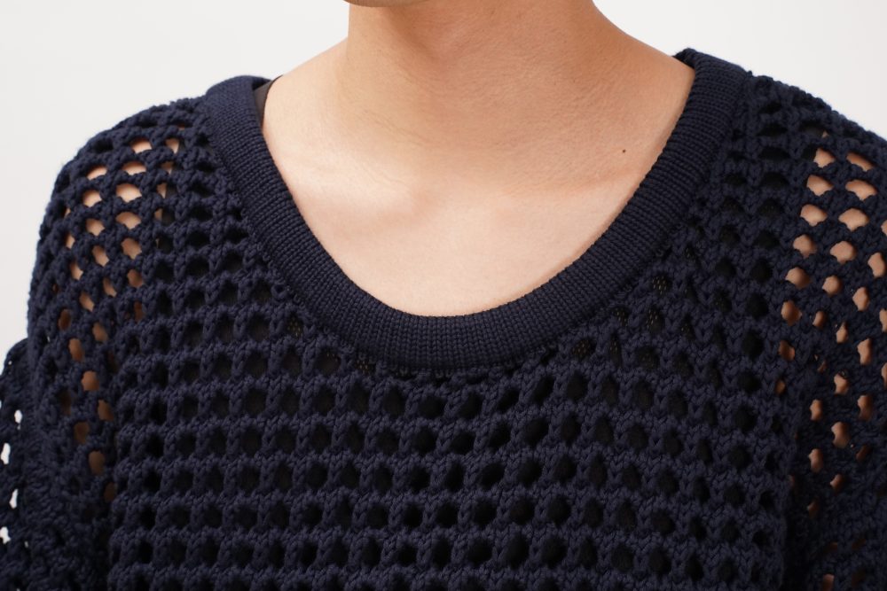 もちろん一番の特徴は、この編み。シースルーとか透け感とかいう言葉では歯が立ちません。
