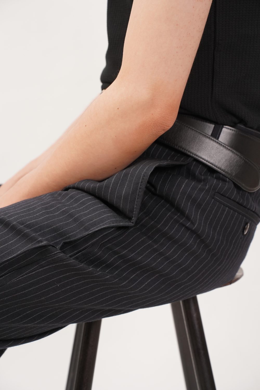 よく見るとサイドシームの脇に一つパーツが入っていますね。普通のスラックスにはない作り。