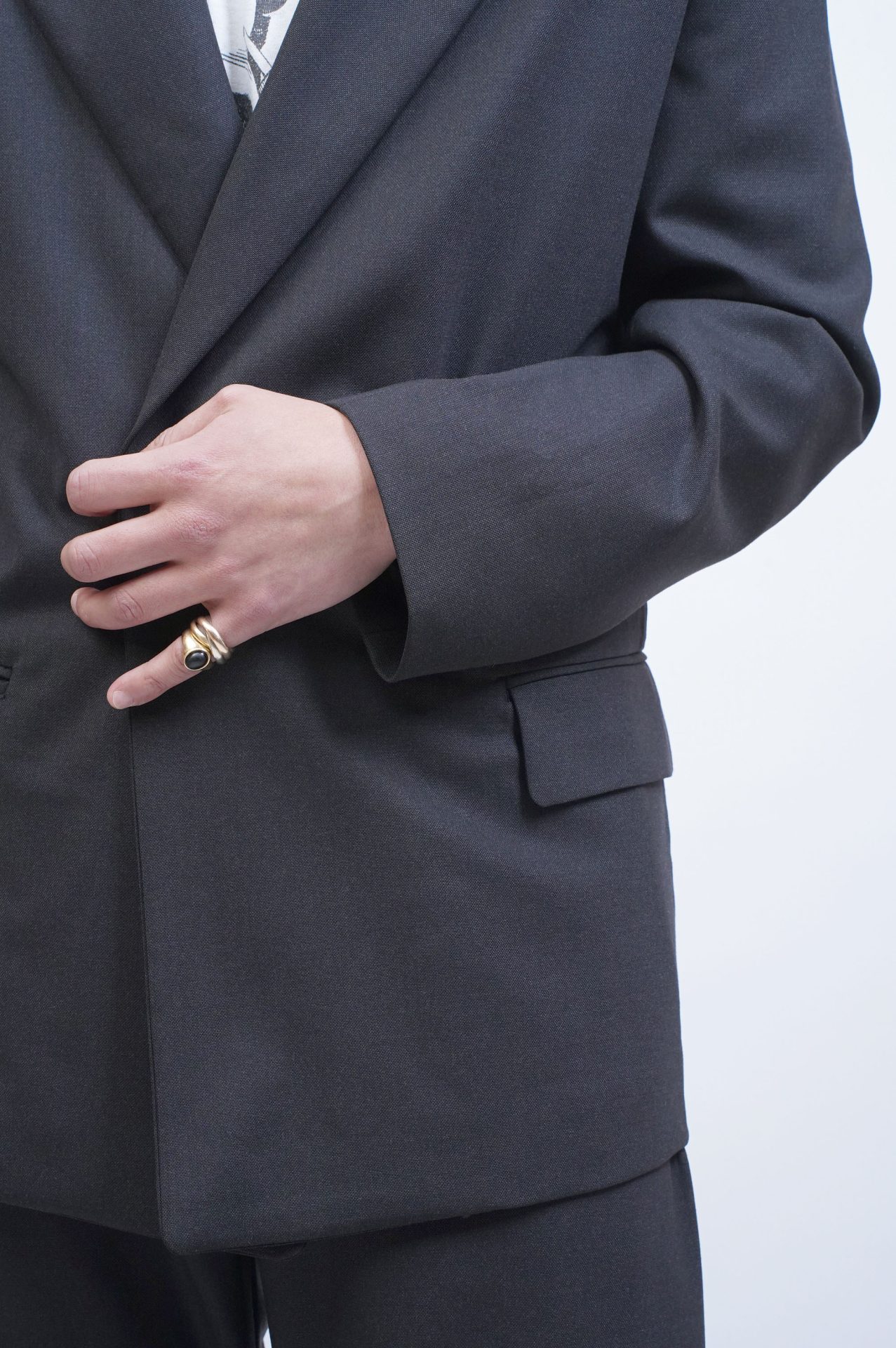 「ボタンレス」どころか肩パッド以外ほとんどのテーラード的構造を省いた、着る人にも見る人にも威圧感ゼロの柔らかな雰囲気。襟なんて綺麗なふんわりとしたロールが裾まで返っている。やる気があるのかやる気がないのかわからない。