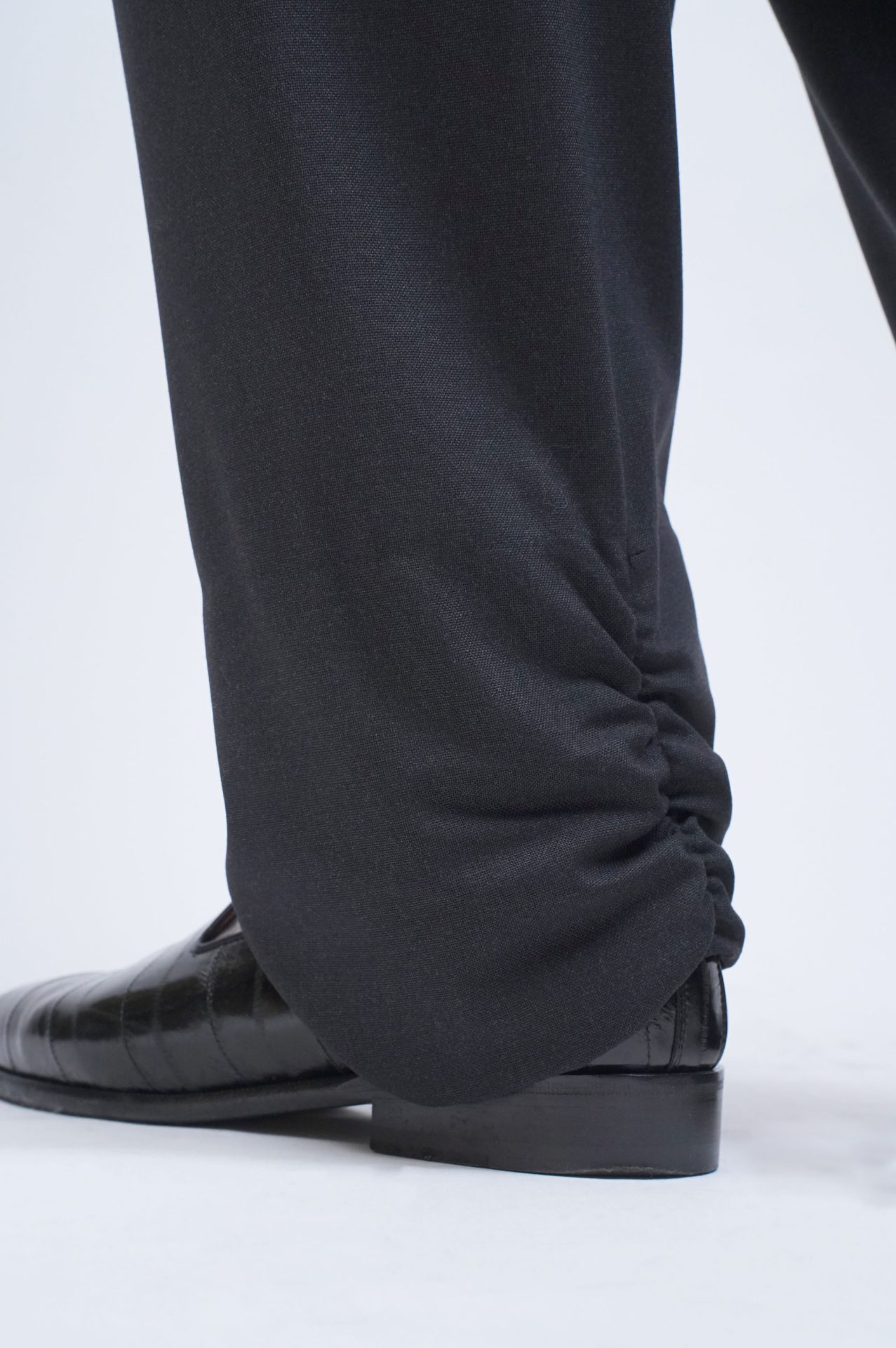 だからこそ、裾をステッチでギャザー状に摘み上げた破壊的なディテールがとても、良く映る。
