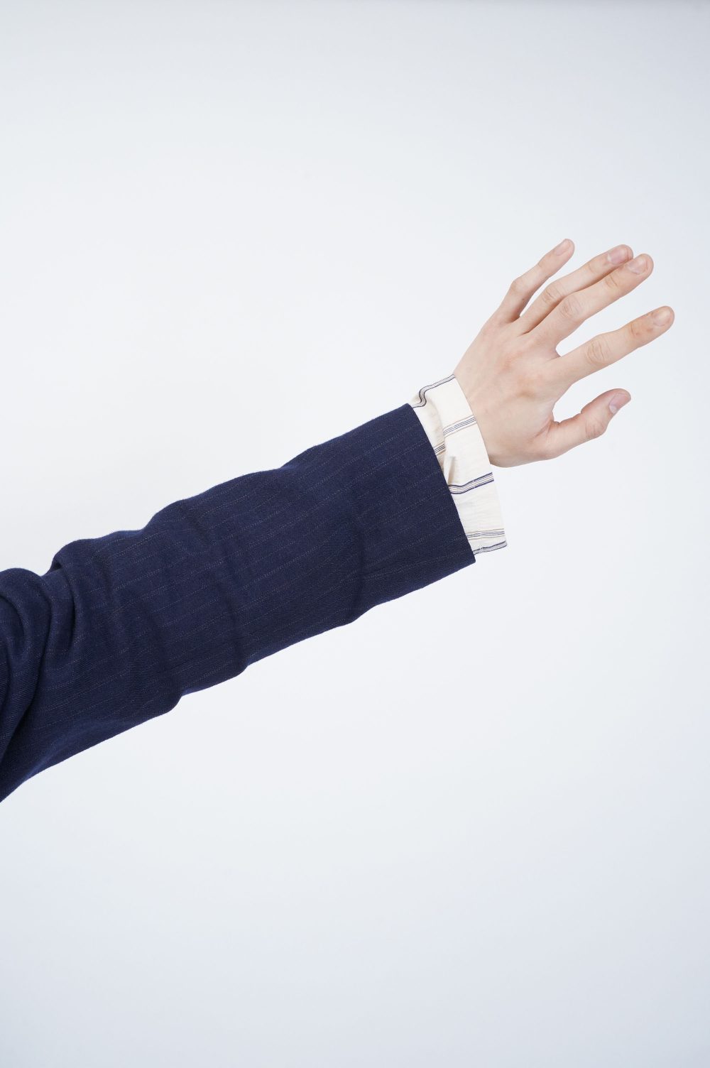 クリーム地に走る、紺と山吹色のマルチストライプ。