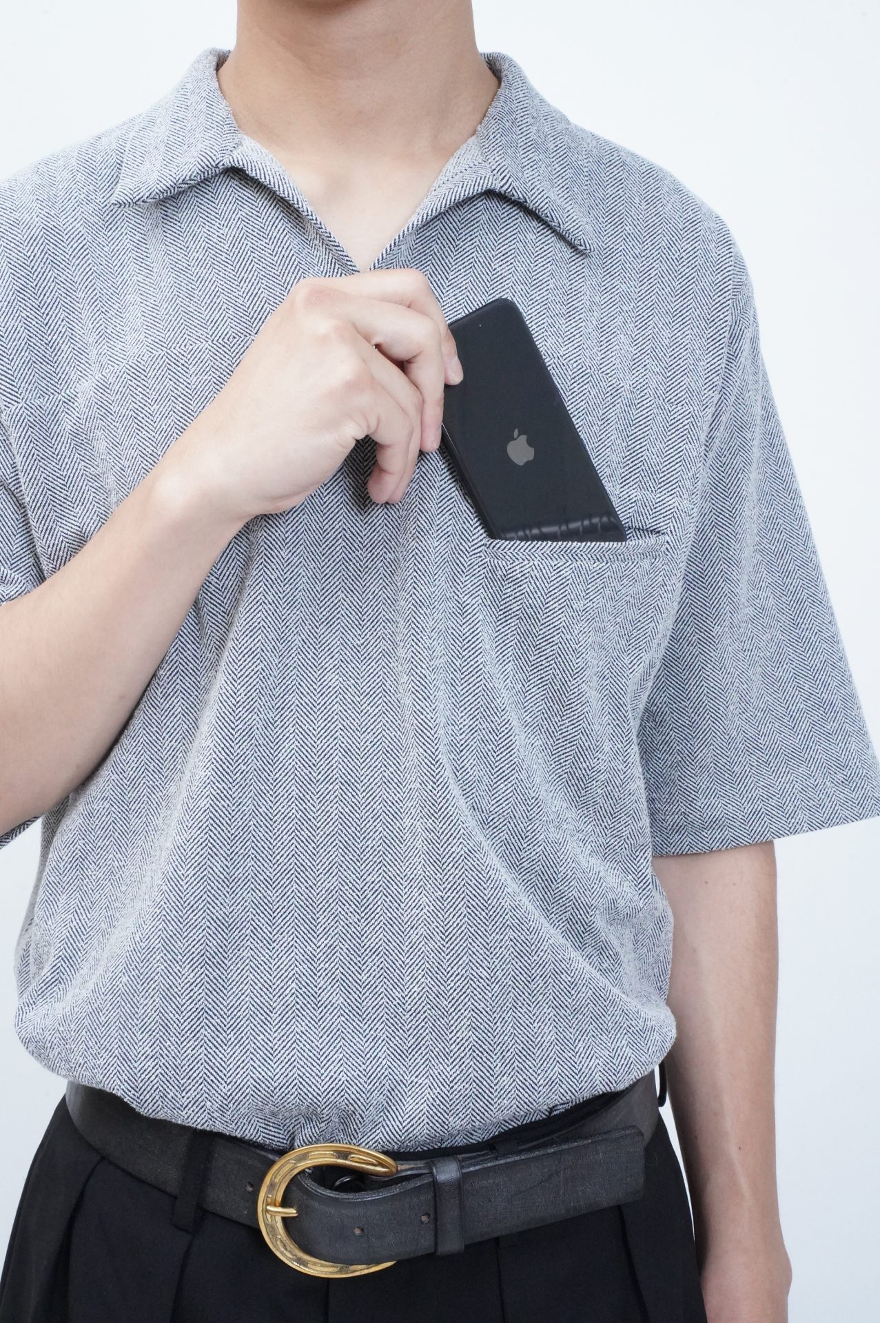 小ぶりな襟と浅い下がりの慎ましい爽やかさもそうなんだけど、このポケットの感じも好き。