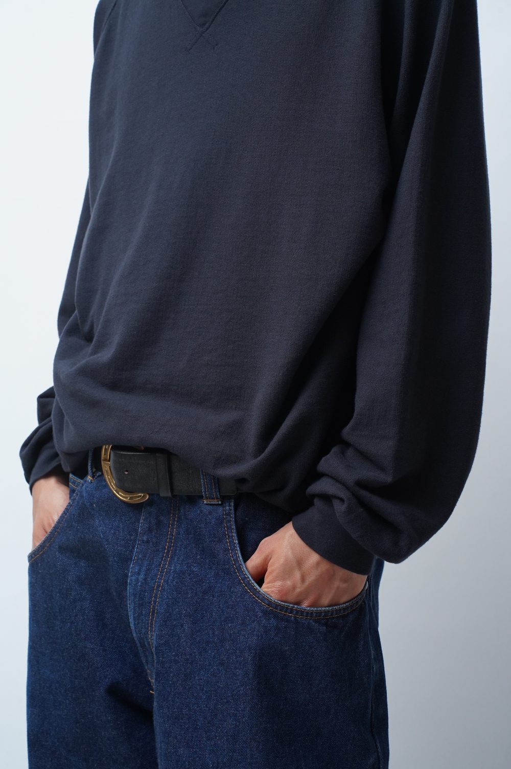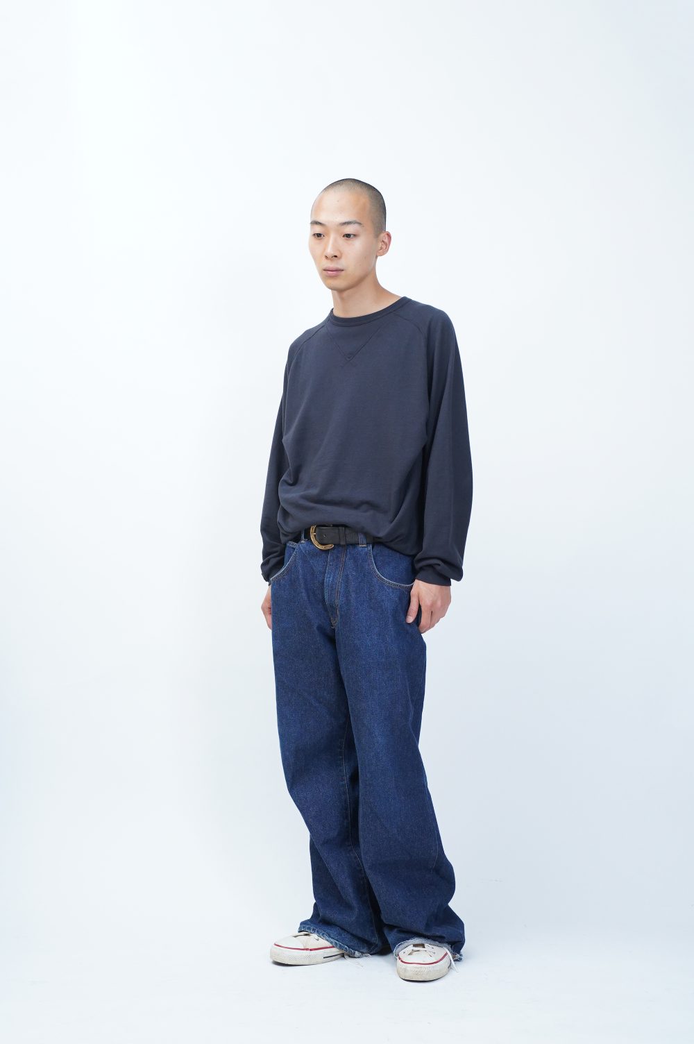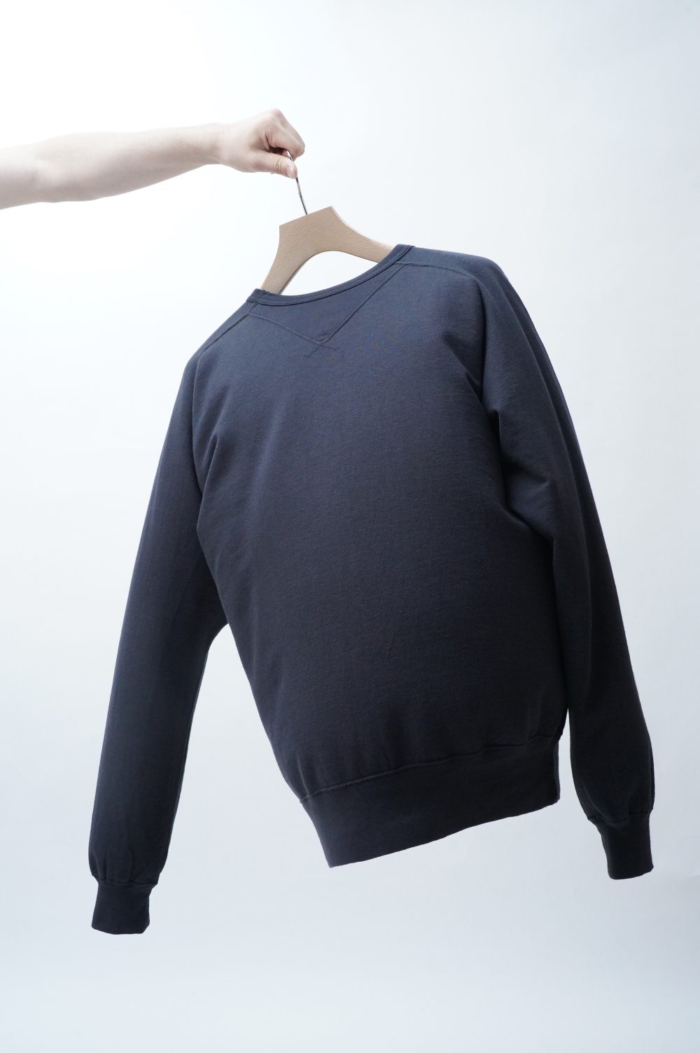1930年代後半のスウェットをリファレンスとしたクルーネックプルオーバースウェット。表⽷にはナチュラルなムラ感が特徴のラフィコットン、裏⽷にはスヴィン綿のムラ⽷を採⽤しています。着古して裏⽷が抜けたヴィンテージスウェットの透ける様な⾒え⽅と肌触りを再現しています。フリーダムスリーブが特徴的なデザインとなっています。(NICENESS Official Websiteより引用)