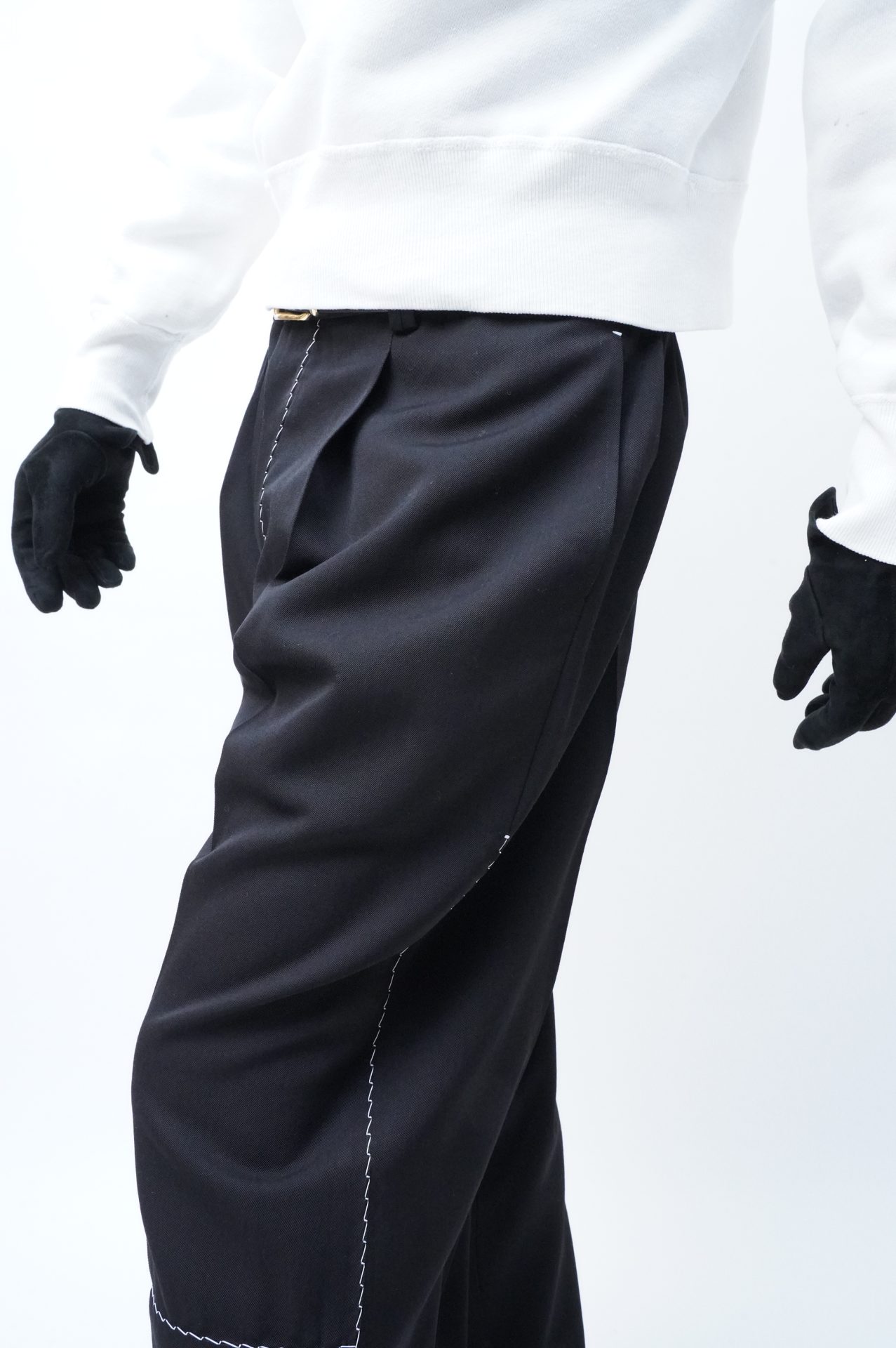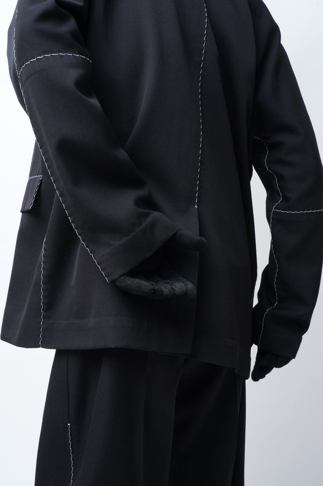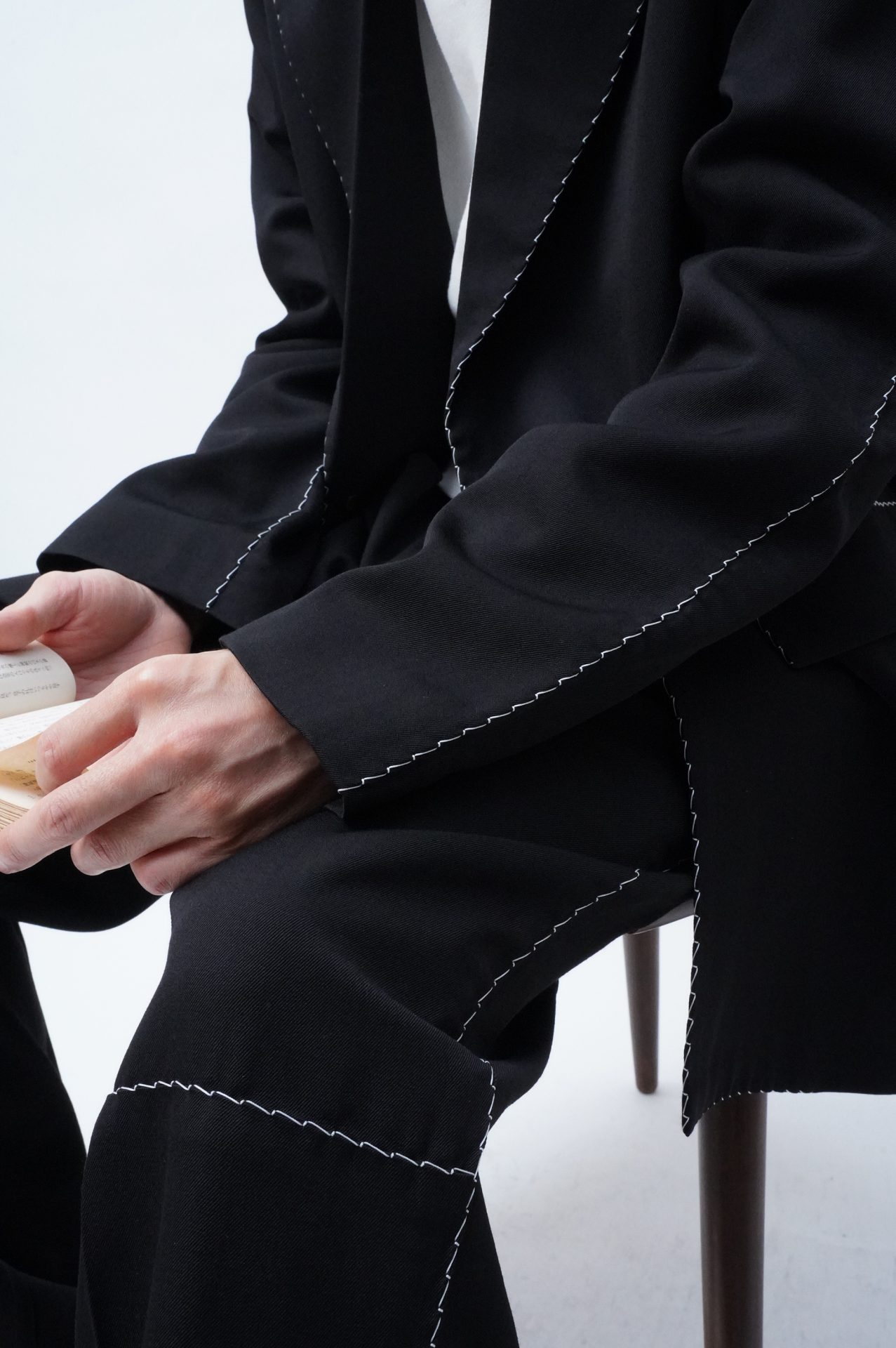 彼の作品は欧州連合知的財産庁に登録された独自のステッチ製法で作られており、一着あたり約55時間の手縫い作業が施されています。内部の仕上げに至るまで、すべてデザイナー自身の手によるものです。付属品に至るまで、全てデザイナー本人が製作しています。