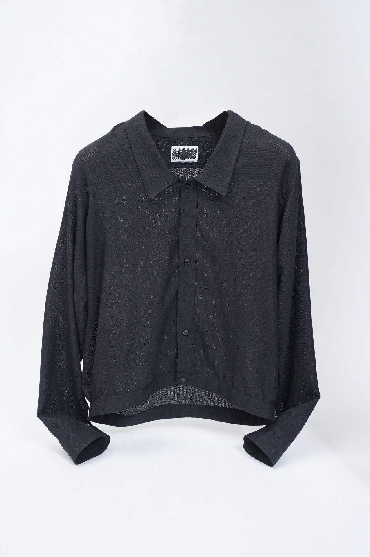 ちょうど今、のタイミング。 以前こうしさん(?)をして「こ の洋服は一体 ?!?!」と言わしめた、 CCFS06UNI。の、B。 こうしさんをあそこまで惹き込んだその絶妙な形については、前掲埋め込んだリンクまで! B、ということで色違い、生地違い。 BLACKに見えるその色は、表記によると DK.NAVY。限りなく黒に近い藍。 100% WOOL 。そしてその薄さ、軽やかさ。 光の透過具合から想像していただけるかも知れませんが、通気性非常に良し。 なぜならこの生地は、からみ織。