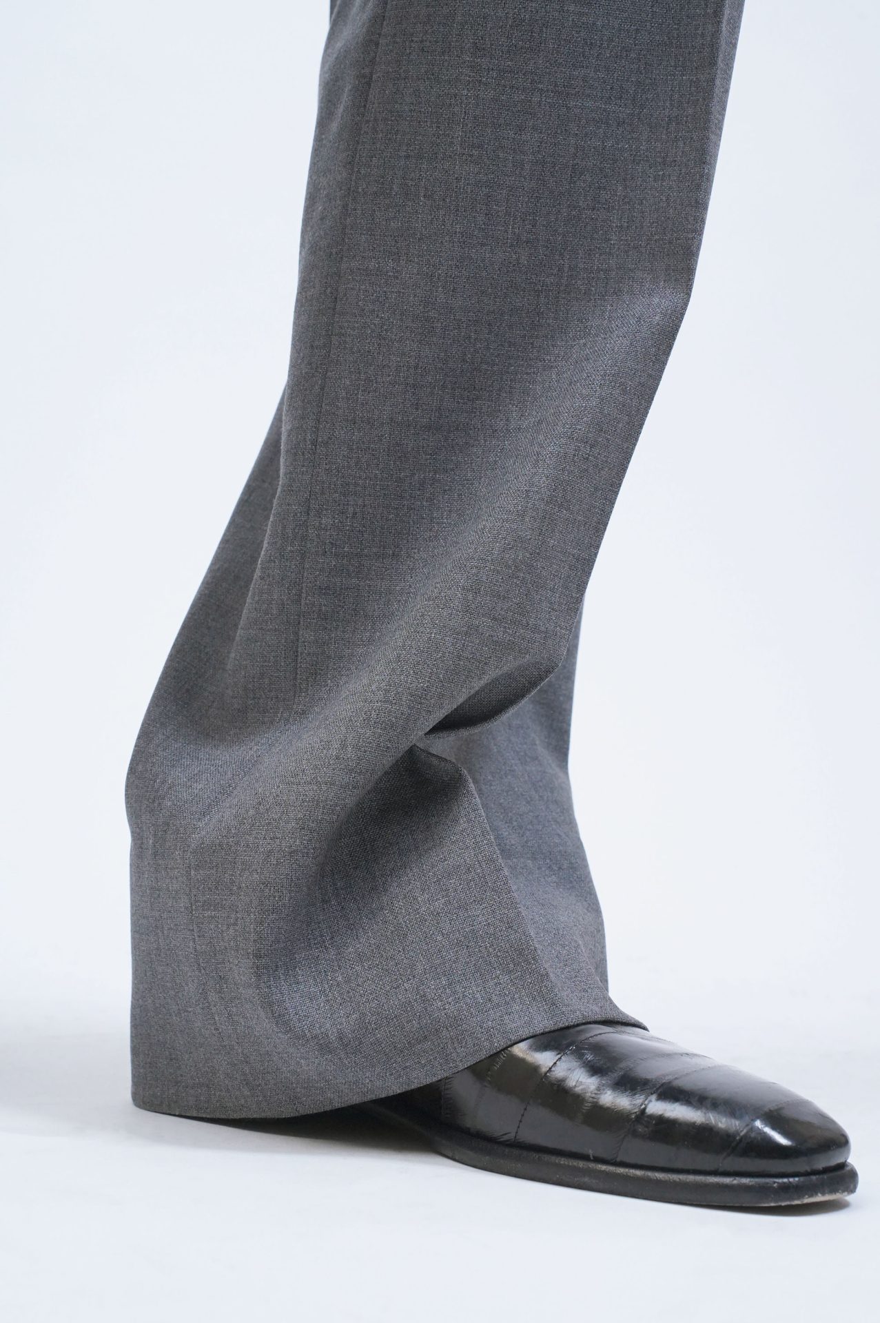 ストーンと落ちてきたワイドな裾。 ピシッと通るセンタープレスがくるぶし間際で自然に折れ曲がる。そして軽やかに溜まる。 なんときもちい光景だこと!