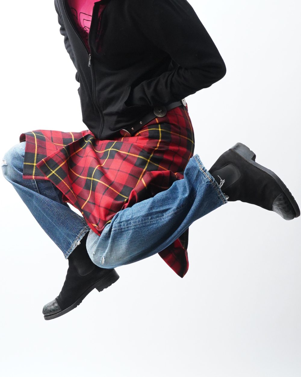 ヴィヴィアンウェストウッドでメンズウェアのデザイナーを務めたロンドンのビスポークテーラーがデザインし、スコットランド製のタータン生地をロンドンのテーラード工房が縫った、まっすぐなイギリス。