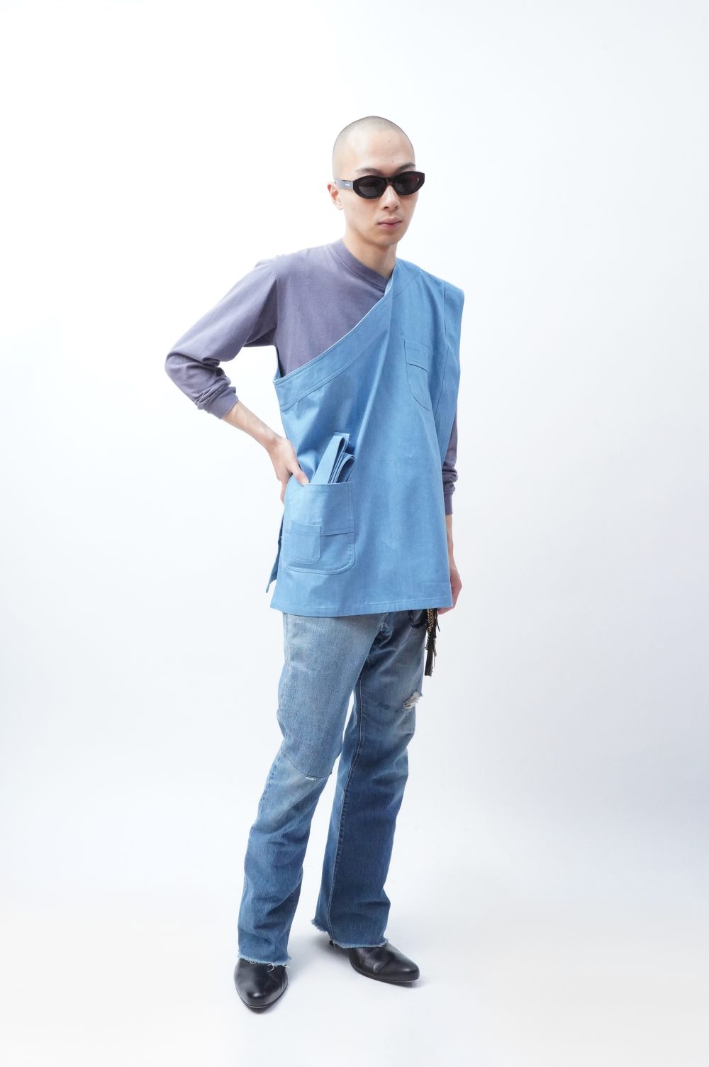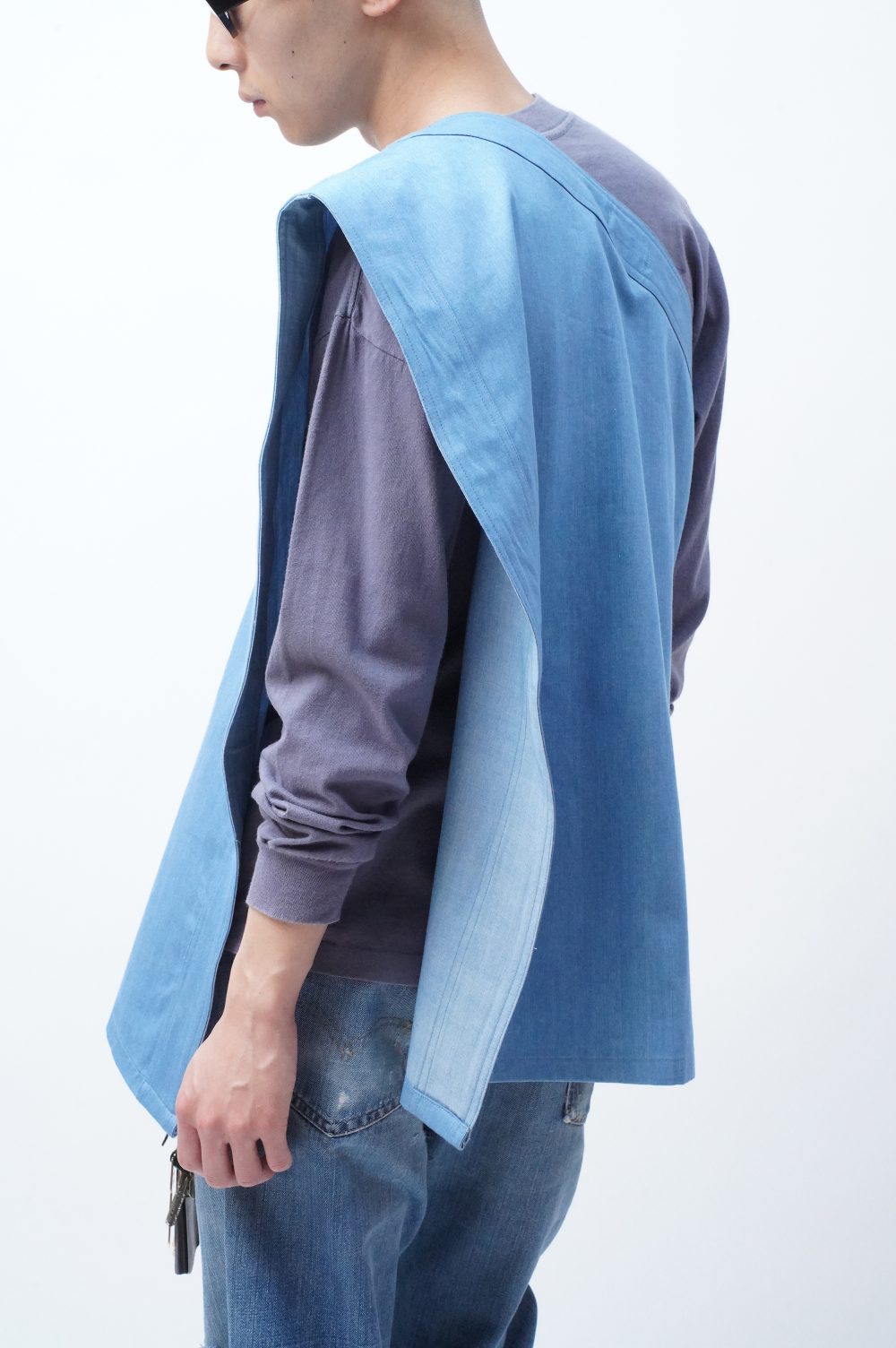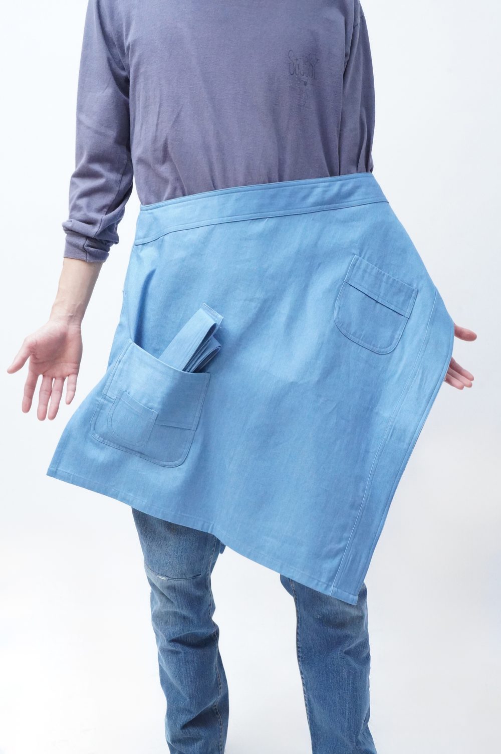 「GEORGIAのエプロン」という触れ込みで幕を開けた本BLOGでしたが、この姿を見る限りでは、ワンショルダーのベスト、と言った方がしっくりくるような気もしてきます。そんな気がしてきながらも眺めていると、ポケットが絶妙なツール感を醸してくる気もします。まあエプロンって言っているしエプロンか。いや、曖昧疑問はDIGあるのみ。2秒ググります。