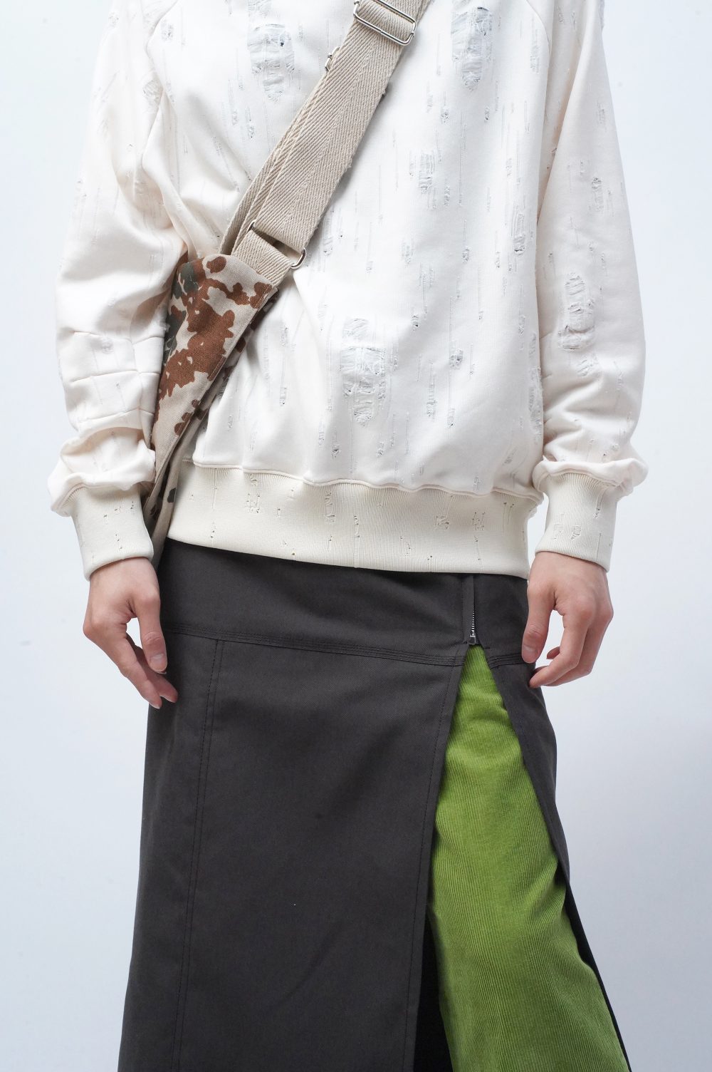 滴り破れた後、という特殊なスタート地点のスウェット、というわけですね。