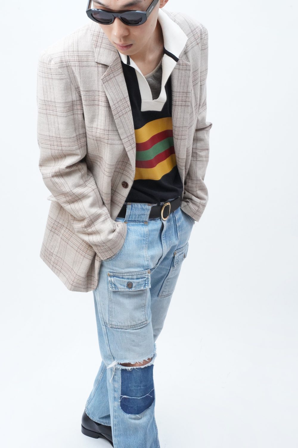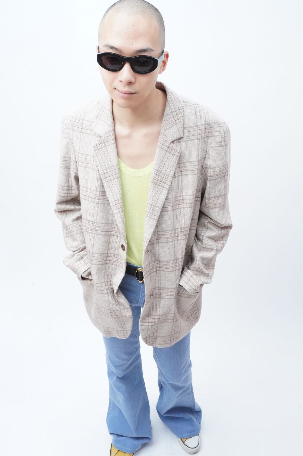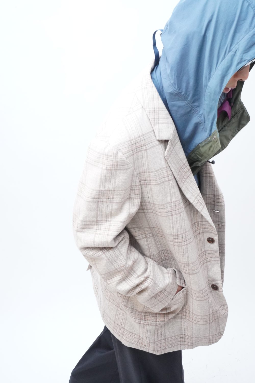 リネン80%、コットン20%のデッドストック生地を使用した2つ釦のテーラードジャケット。