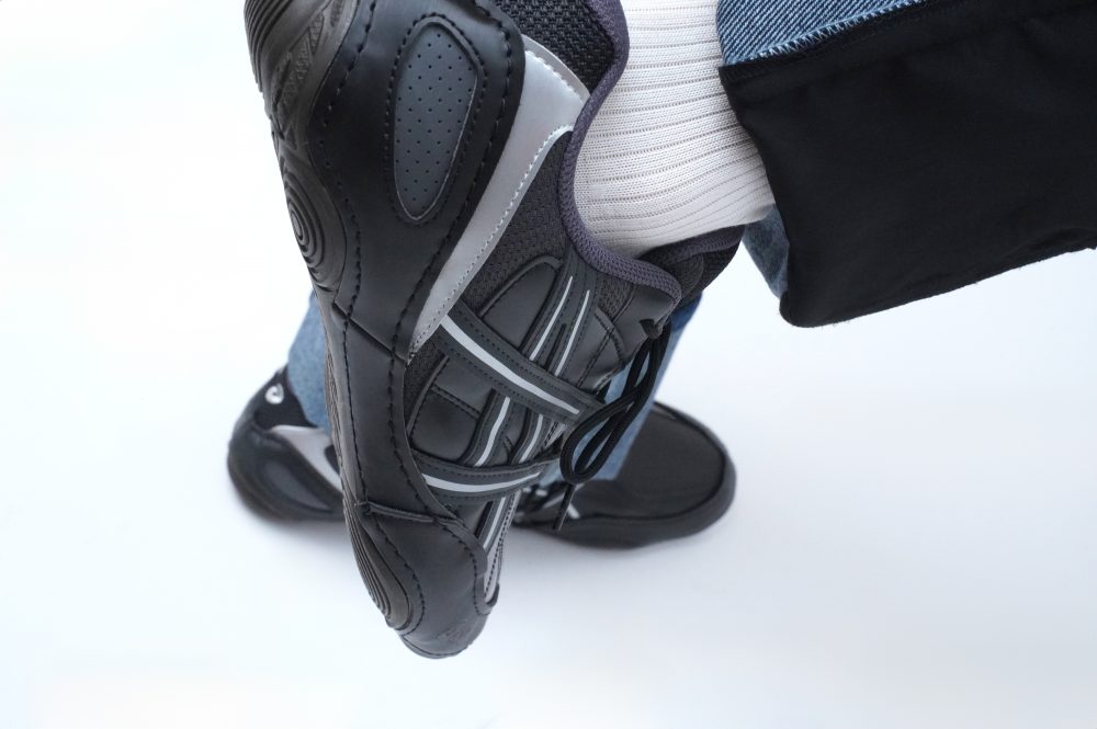 が、生み出すこれまたフラットシューズの軽い履き心地、に加わるクッション性溢れるスニーカーの軽快な足取り。