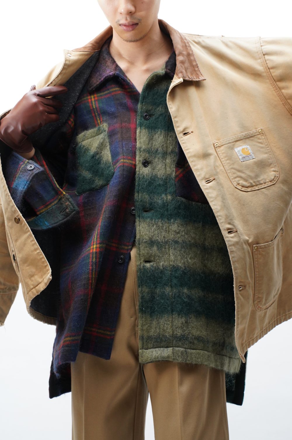 この4種のチェックからなる大きなスモックシャツは、NICHOLAS DALEYとの出会いにも、再会にも、お誂え向き。
