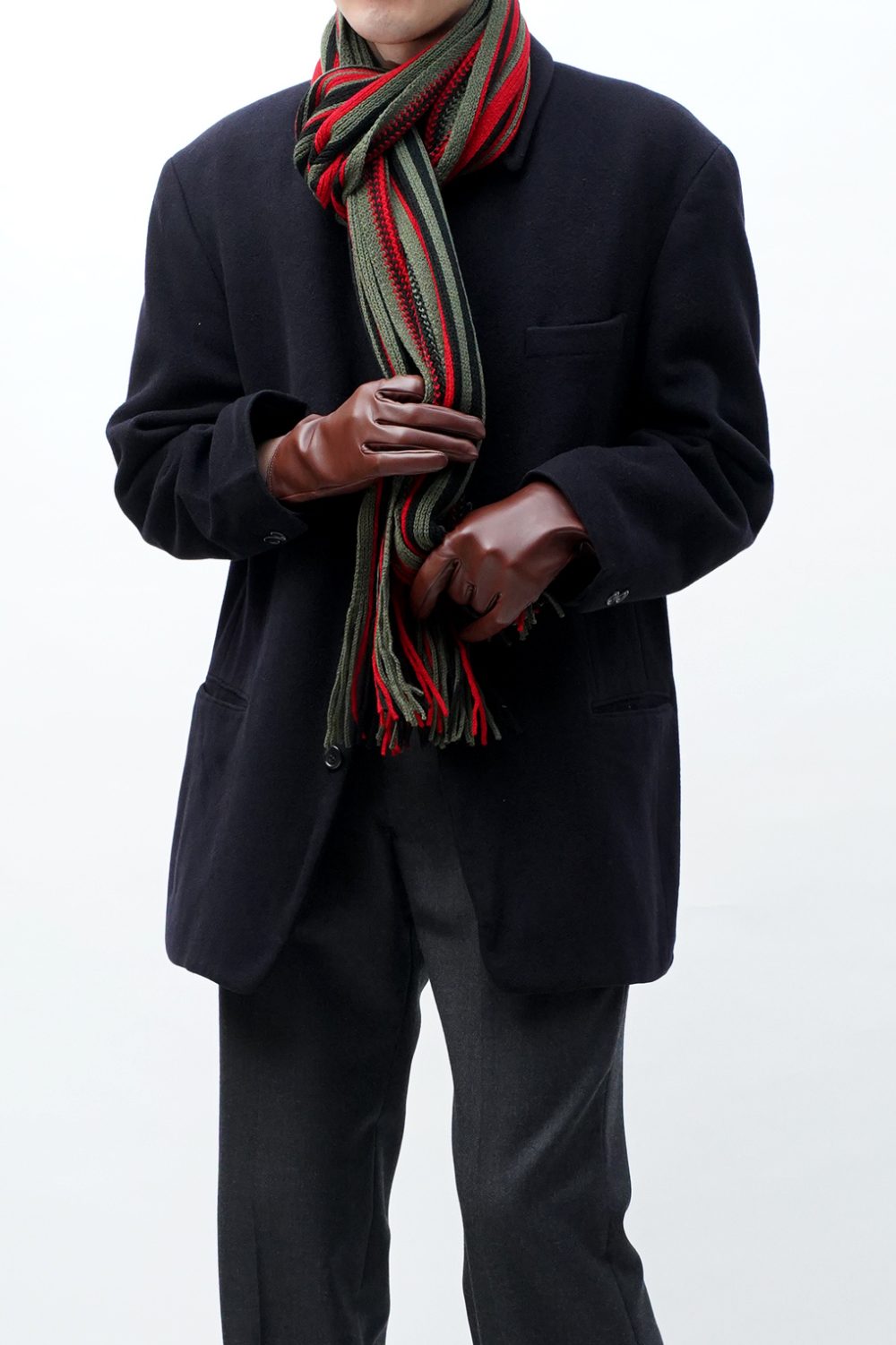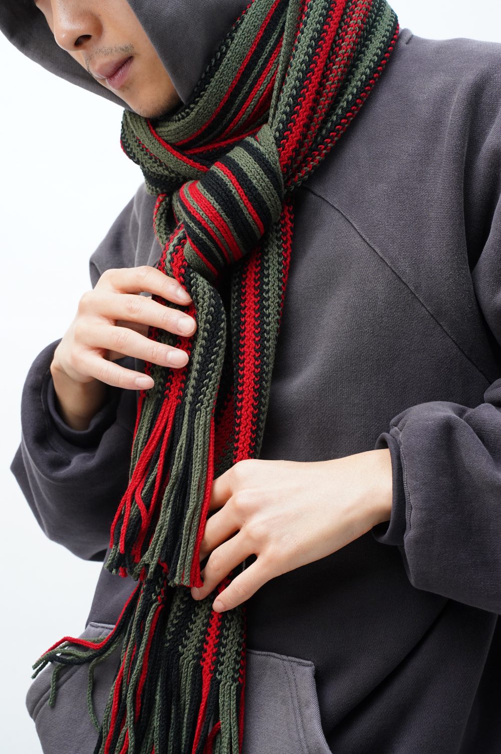 というかここまで、このマフラーがニットであることをことさら強調して紹介してきたようですが、特に珍しいものでもないですよね。ストライプ柄のものだってよく見かけるはず。