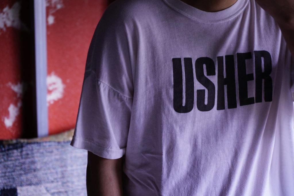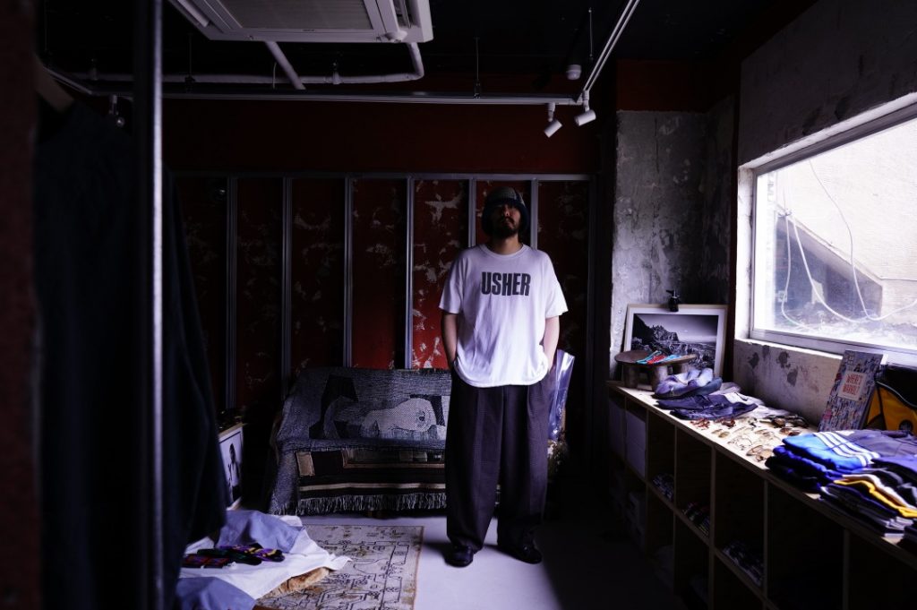 試しに店に置いてある好きでもなんでも無い”USHER”(商品)を着てみました。